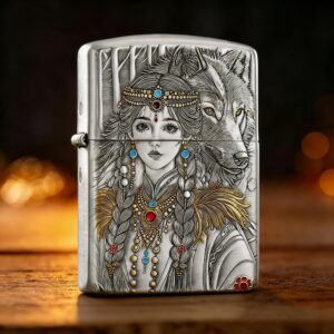 Zippo Armor Etching Silver With Gold Indian Girl Lighter