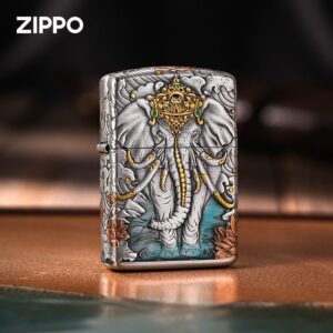 Zippo Armor Etching Silver With Gold Six-tusked White Elephant Lighter