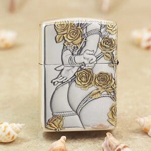 Zippo Armor Etching Silver With Inlay Gold Rose Girl Lighter