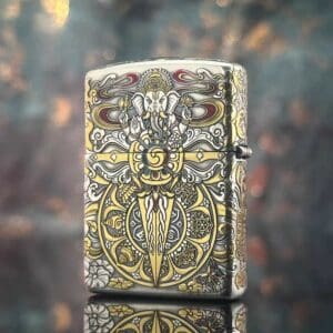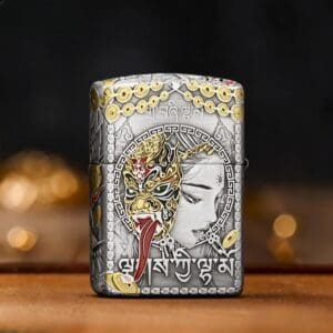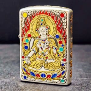 Zippo Plated Silver Enameled Tibetan Buddhist Zakiram Lighter