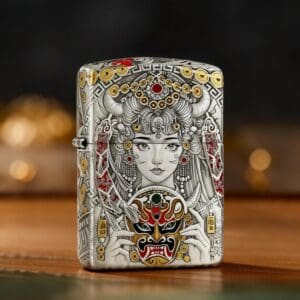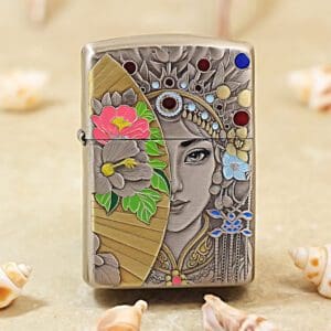 Zippo Armor Etching Silver With Gold Masked Beauty Lighter