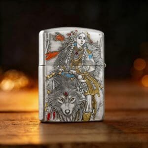 Zippo Armor Etching Silver With Gold Indian Girl Lighter