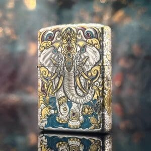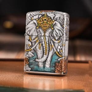 Zippo Armor Etching Silver With Gold Six-tusked White Elephant Lighter