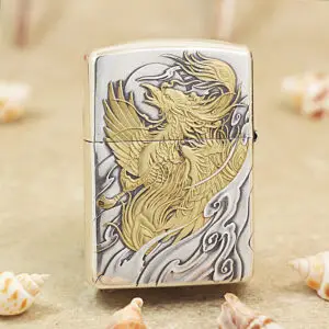 Zippo Armor Etching Silver With Gold Phoenix Lighter