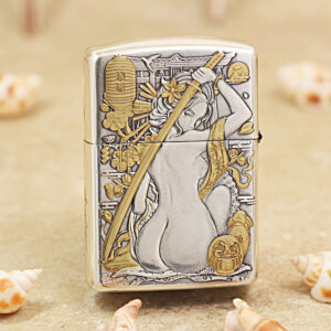 Zippo Armor Etching Silver With Gold Golden Hairpin Beauty Lighter