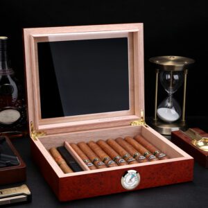 Cigarloong Luxury Cigar Box Humidor With Glass Top Case