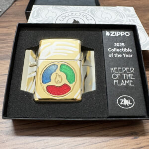 - Description: This limited-edition lighter celebrates Zippo’s 2000 Keeper of the Flame design with a modern twist. It features an Armor® Black Ice® case with Deep Carve and Photo Image 360° processes, adorned with three-colored epoxy inlays (red, blue, green) symbolizing fire, peace, and nature. Each piece is consecutively numbered with a luxury bottom stamp.