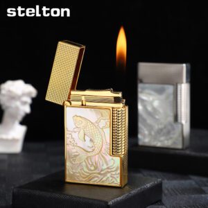 Name: Mother of Pearl – Koi Material: Solid Brass / Plating / Inlaying Uses original butane but the butane will be drained before shipment. We are selling this item as an authorized Calorie Dealer This Lighter is Part of the Line 2 Perfect Ping Collection. Condition: New in original box with international 2 year warranty…