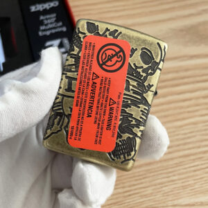 Name: Freedom Skull Design Material: Antique Brass Dimensions: 2 1/4 inches high x 1 1/2 inch wide Condition: New in original box Item number: 49035 This item will be shipped without fluid Orange security label still on the back Zippo Lighters: Iconic Windproof Reliability Welcome to the product details page for Zippo Lighters, the timeless…