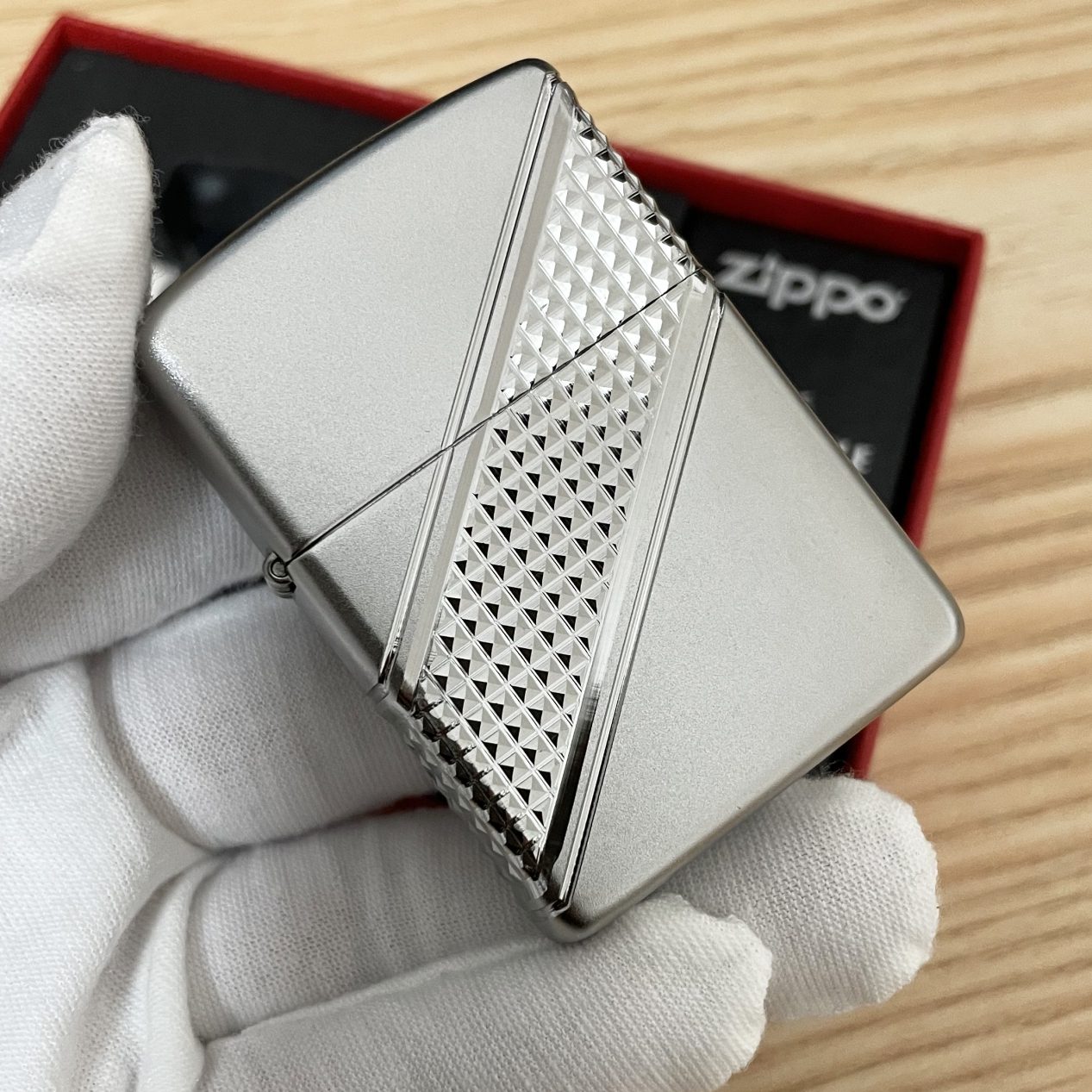 Selected by Zippo owner George Duke, the Armor Satin Chrome base model is adorned with a band of engraved facets around the lighter, making the chrome sparkle like jewelry
