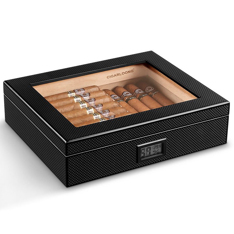 Cigarloong Carbon Fiber Cedar Wood Cigar Box Humidor Case