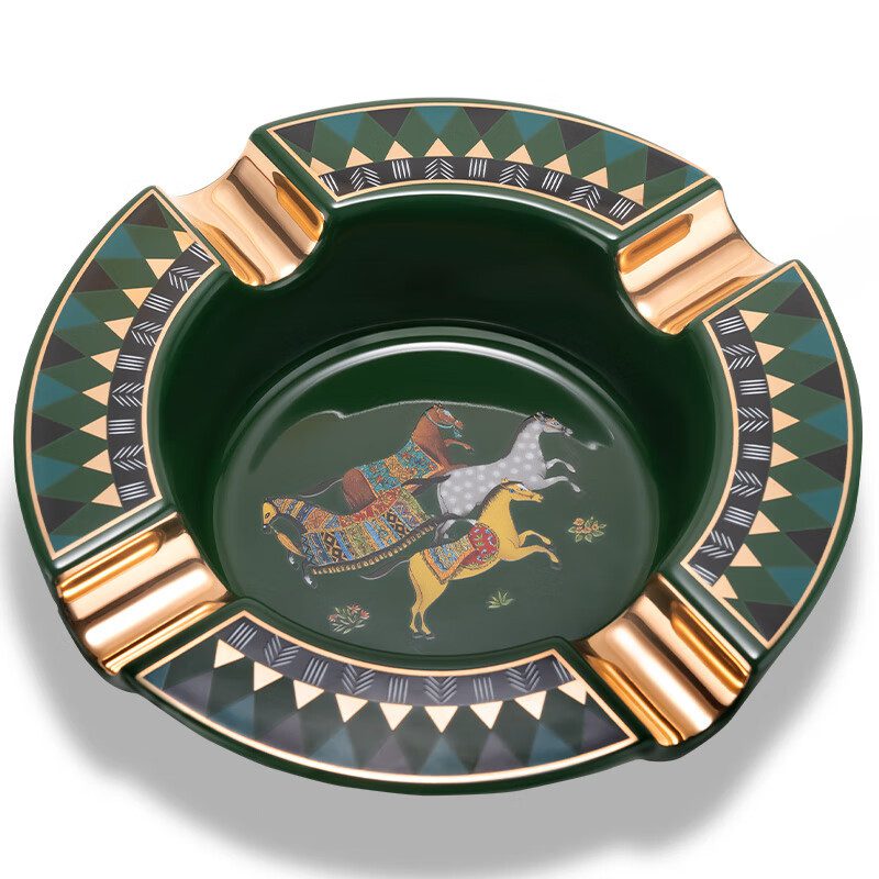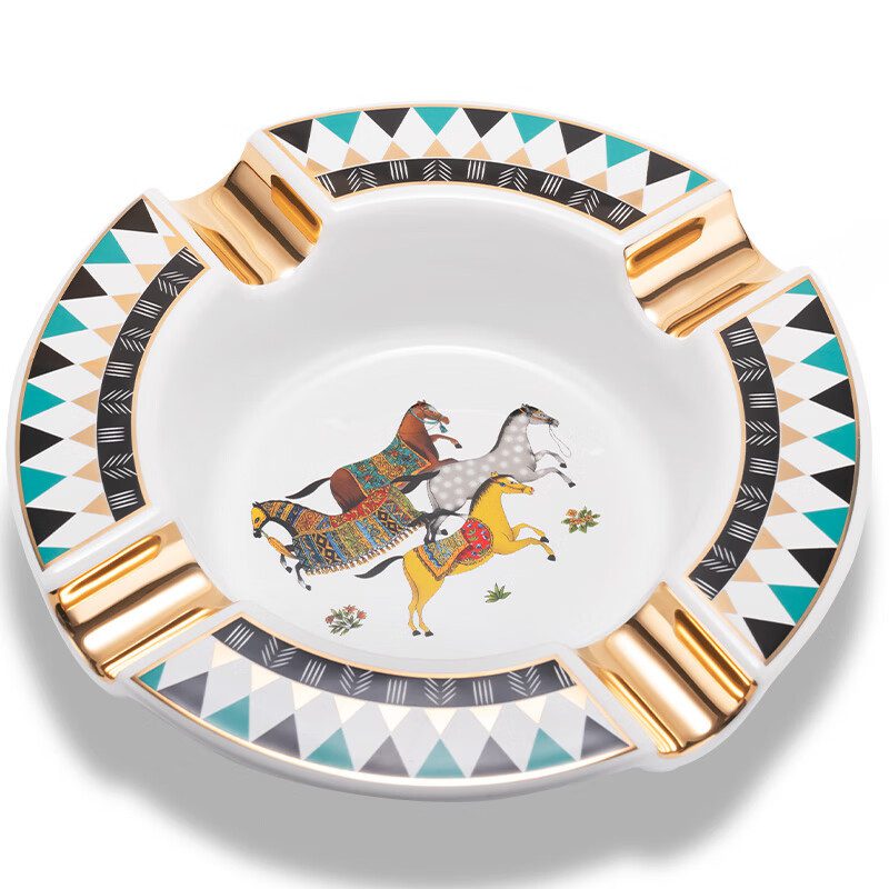 CigarLoong Painted Four Slot Cigar Horse Ceramics Ashtray