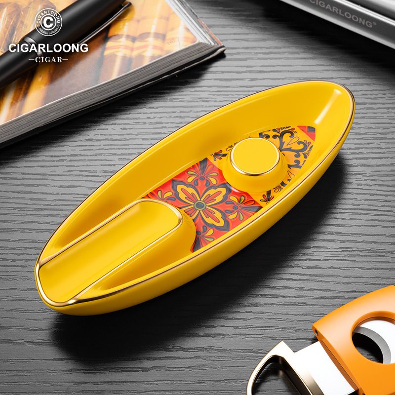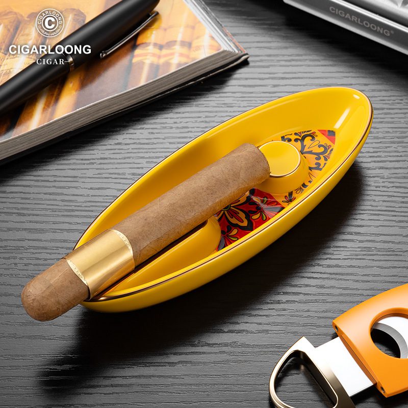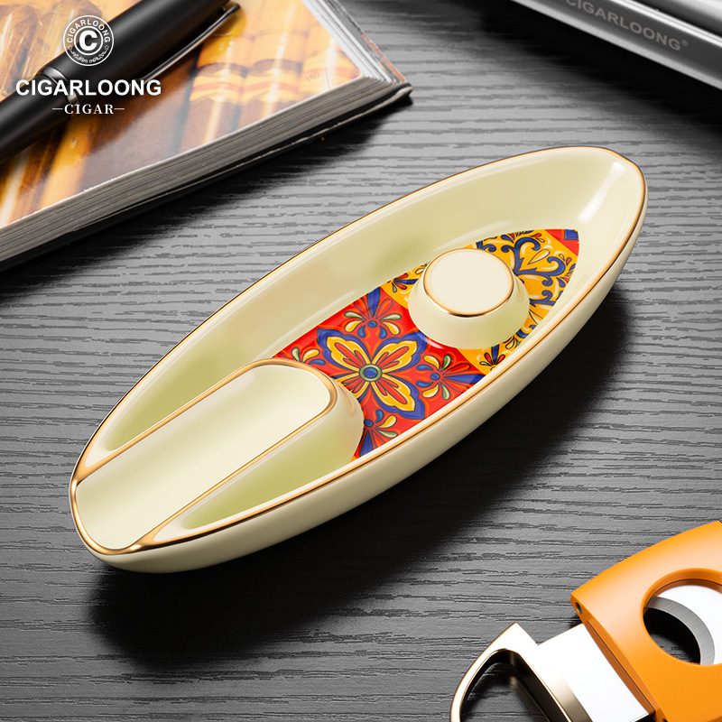 CigarLoong Painted Single Slot Cigar Royal Court Aesthetics Ceramics Ashtray