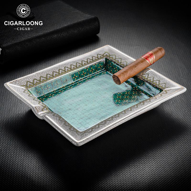 CigarLoong Painted Two Slot Cigar Solid Color Pattern Ceramics Ashtray