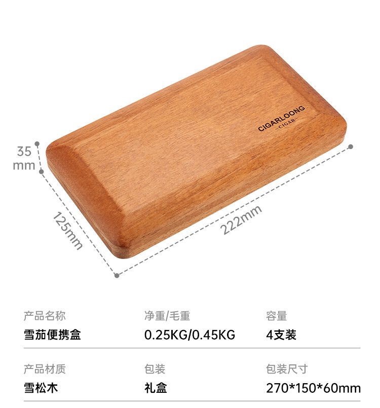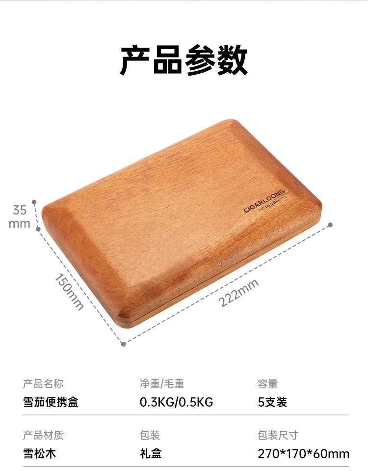 Cigarloong Portable Cedar Wood Cigar Humidor Box Case