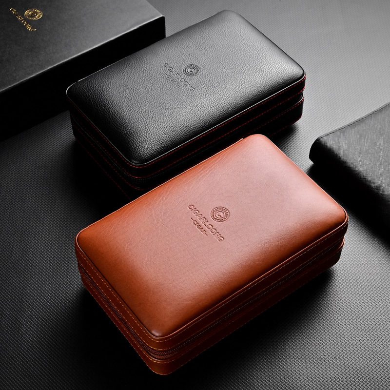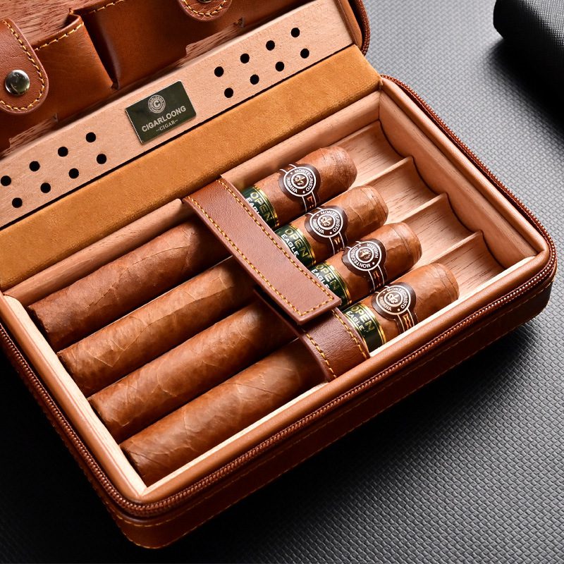 Cigarloong Portable Travel Leather Cigar Humidor Box Case