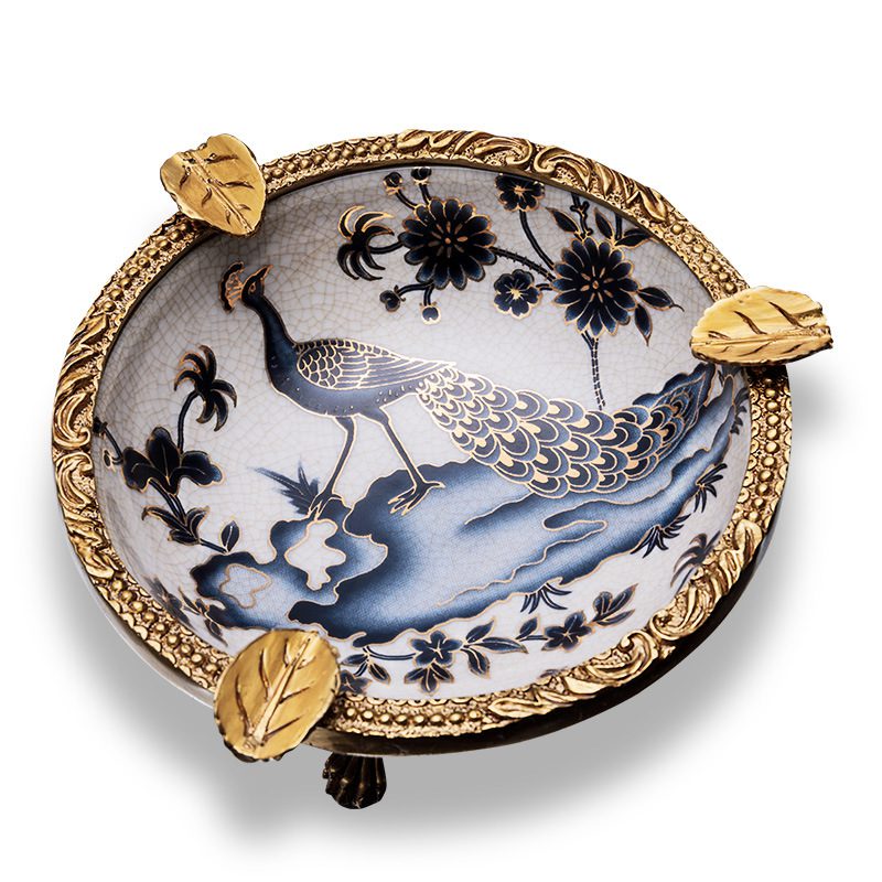 CigarLoong Premium Painted Three Slot Cigar Peacock Ceramics Ashtray