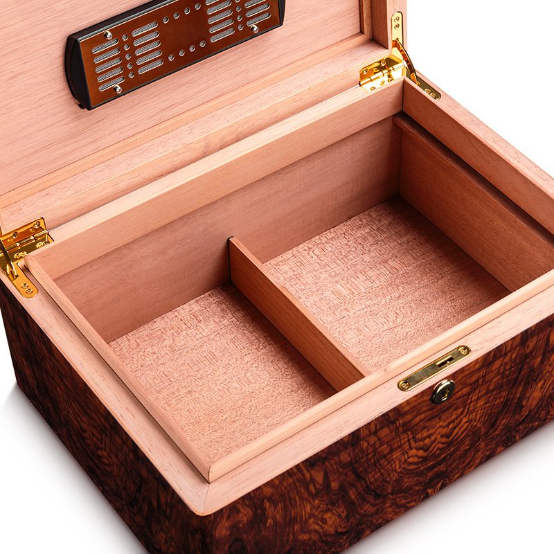 - Glass Top Option — Tempered glass display lid to showcase your collection without opening the humidor.