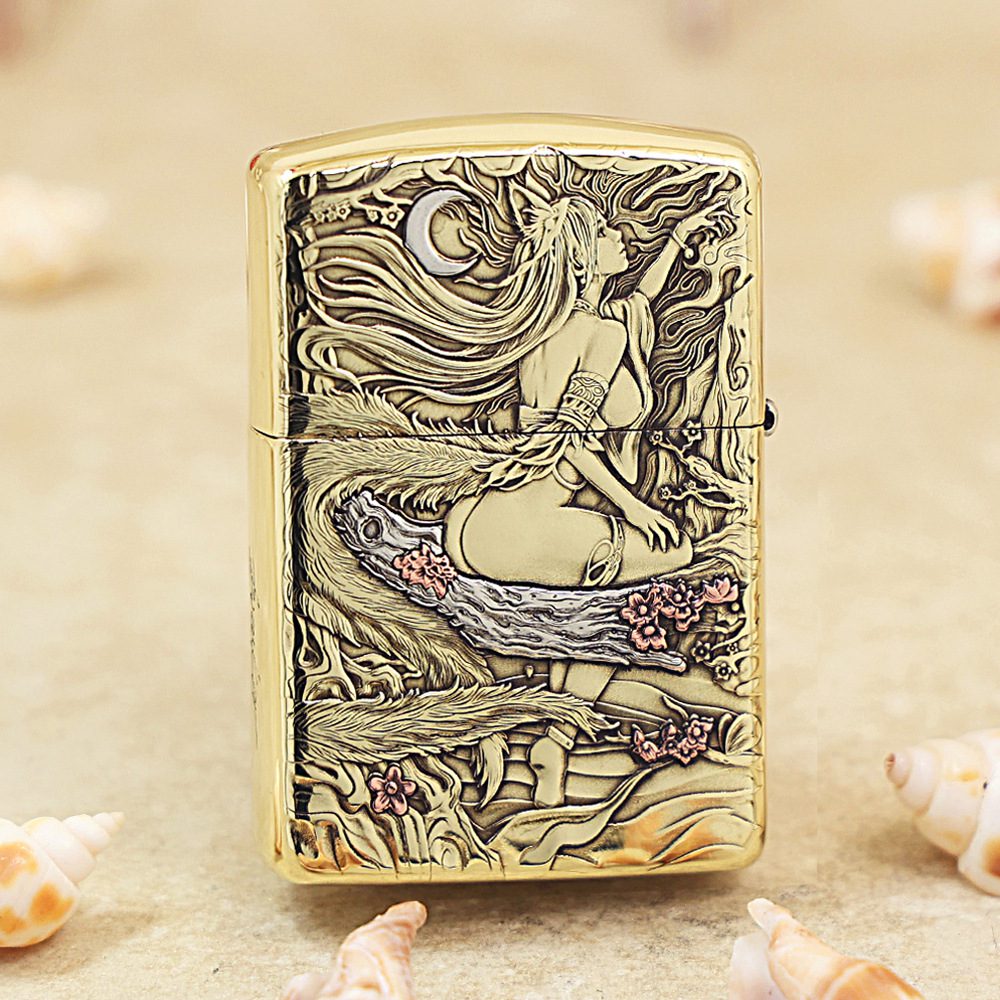Etching Armor Brass 5-Sides Nine-tailed Fox Zippo Lighter