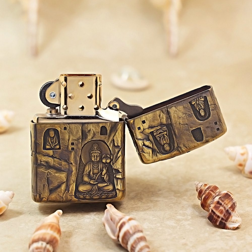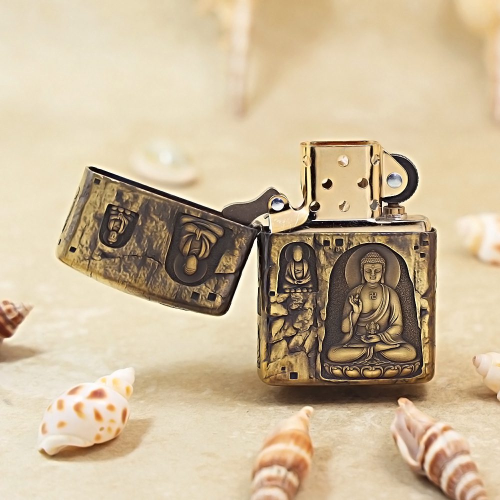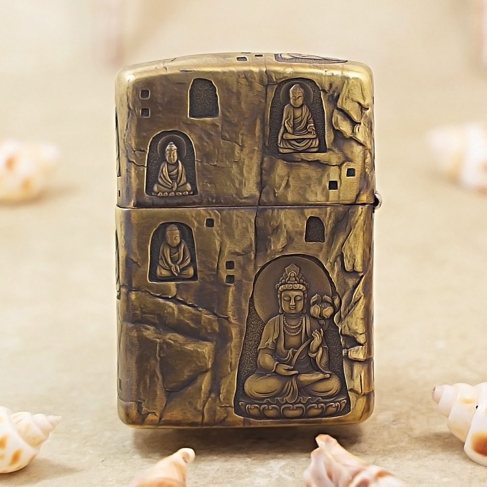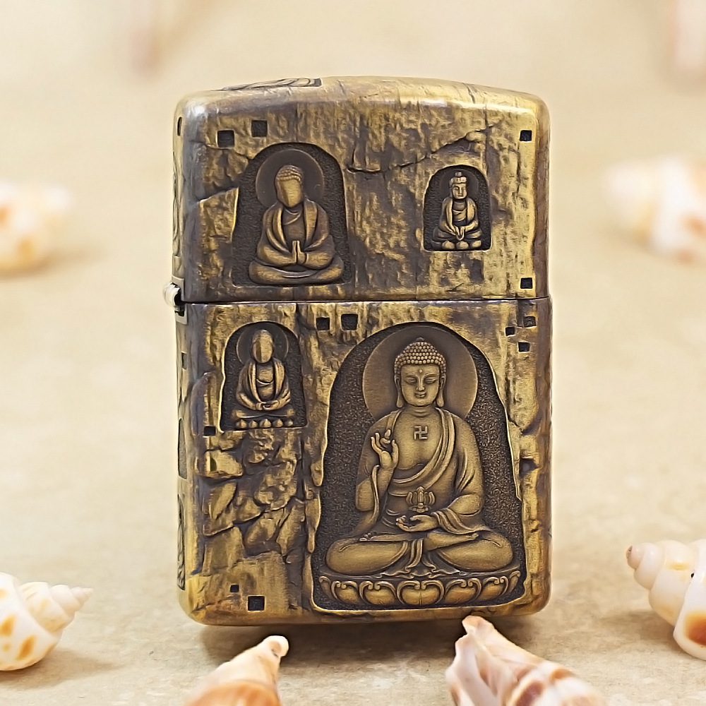 Be the first to review “Etching Armor Brass Grotto Buddha Zippo Lighter”