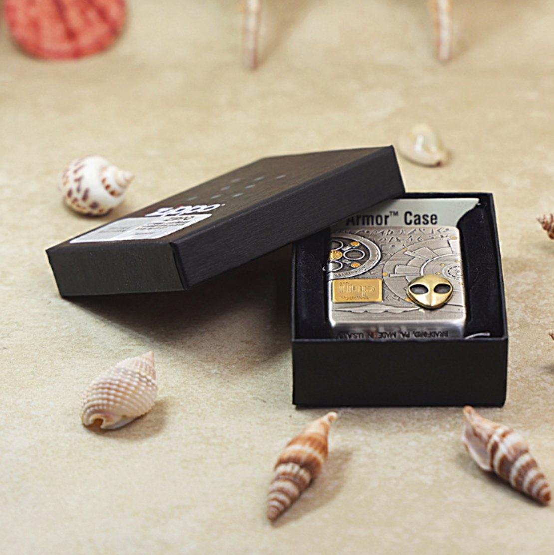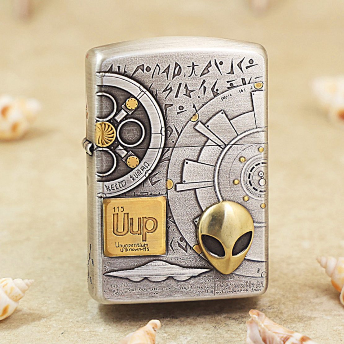 Etching Armor Plated Silver Alien Emblem Zippo Lighter