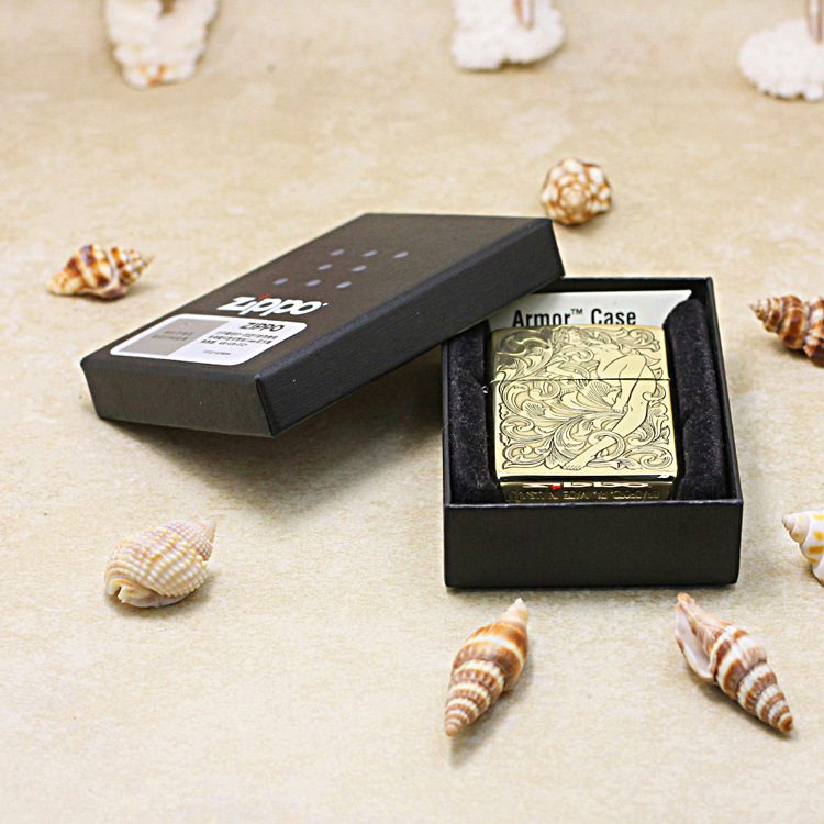 Etching Brass Armor Arabesque and Girl Zippo Lighter