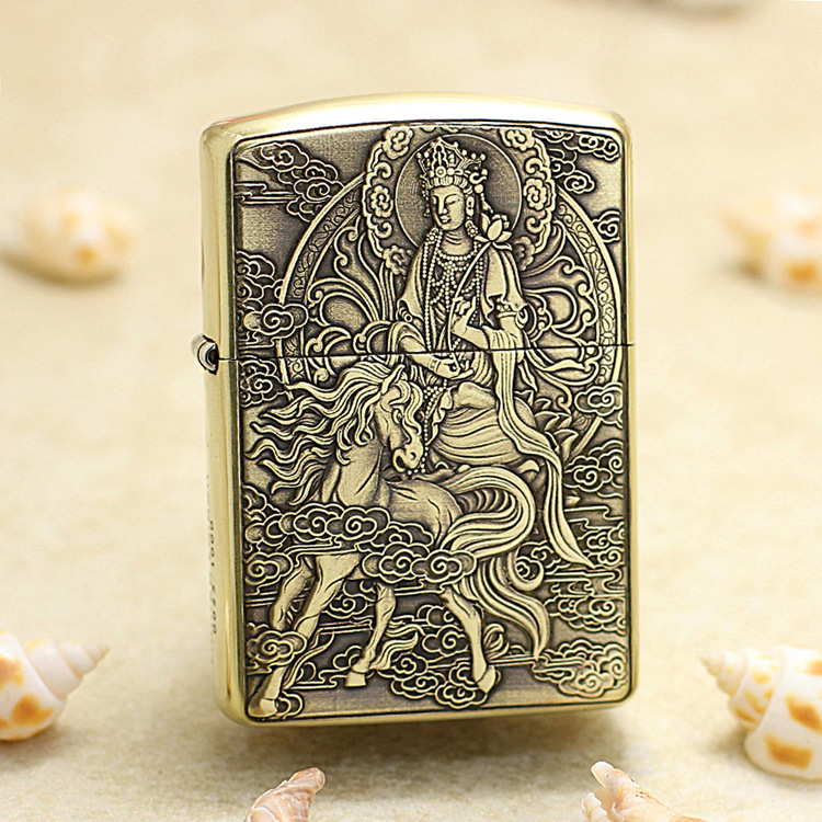 Etching Brass Armor Chinese Zodiac Horse Zippo Lighter