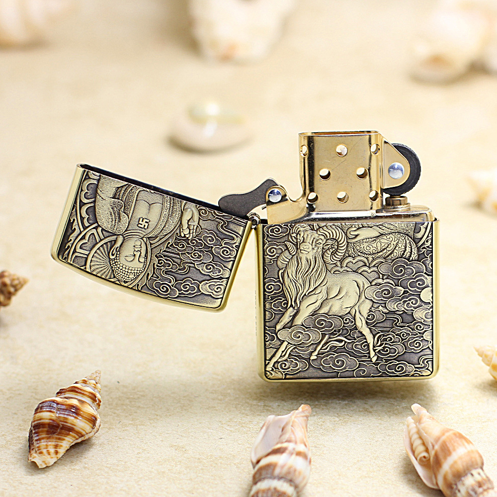Etching Brass Armor Chinese Zodiac Sheep Zippo Lighter