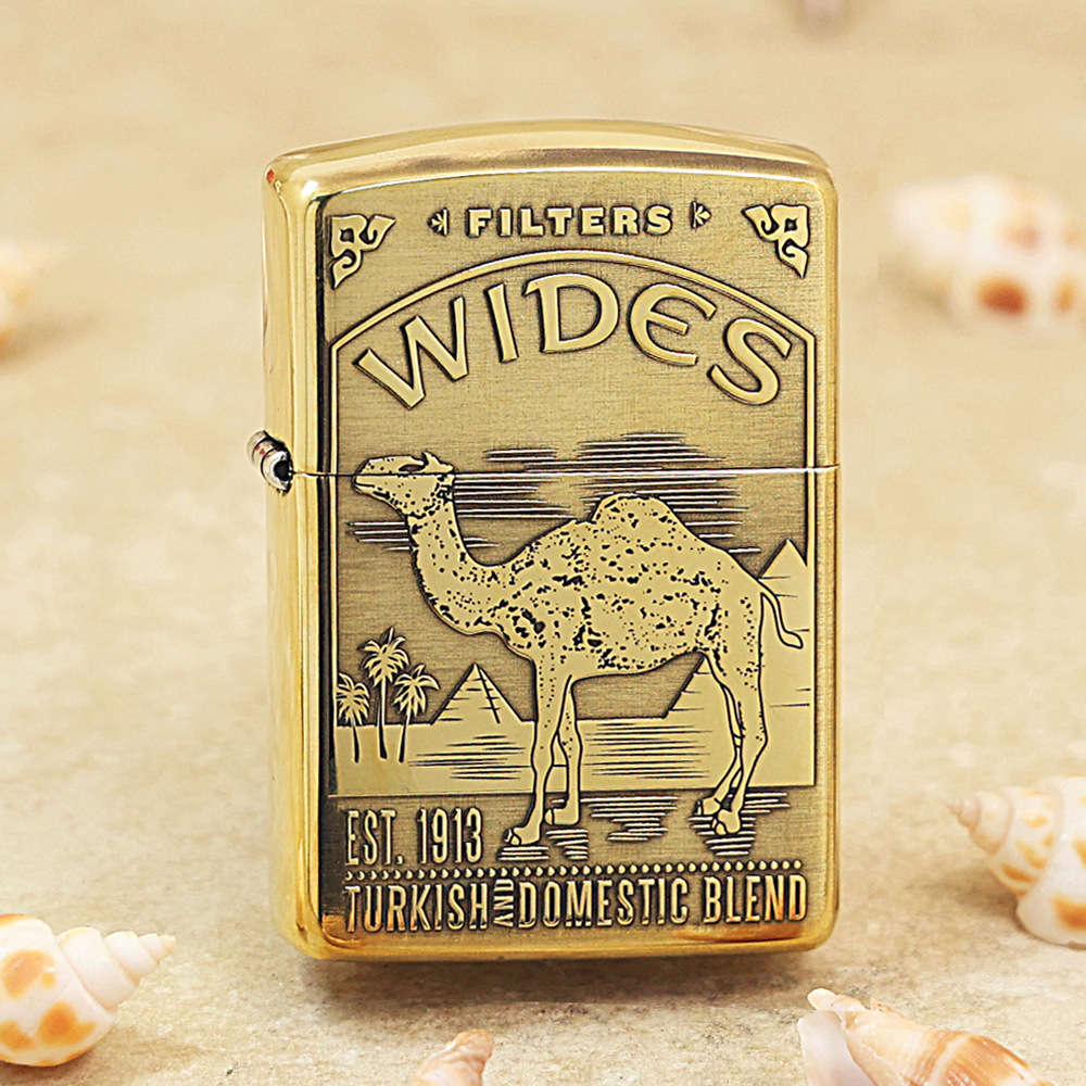 Etching Brass Armor Deep Carve Camel Zippo Lighter