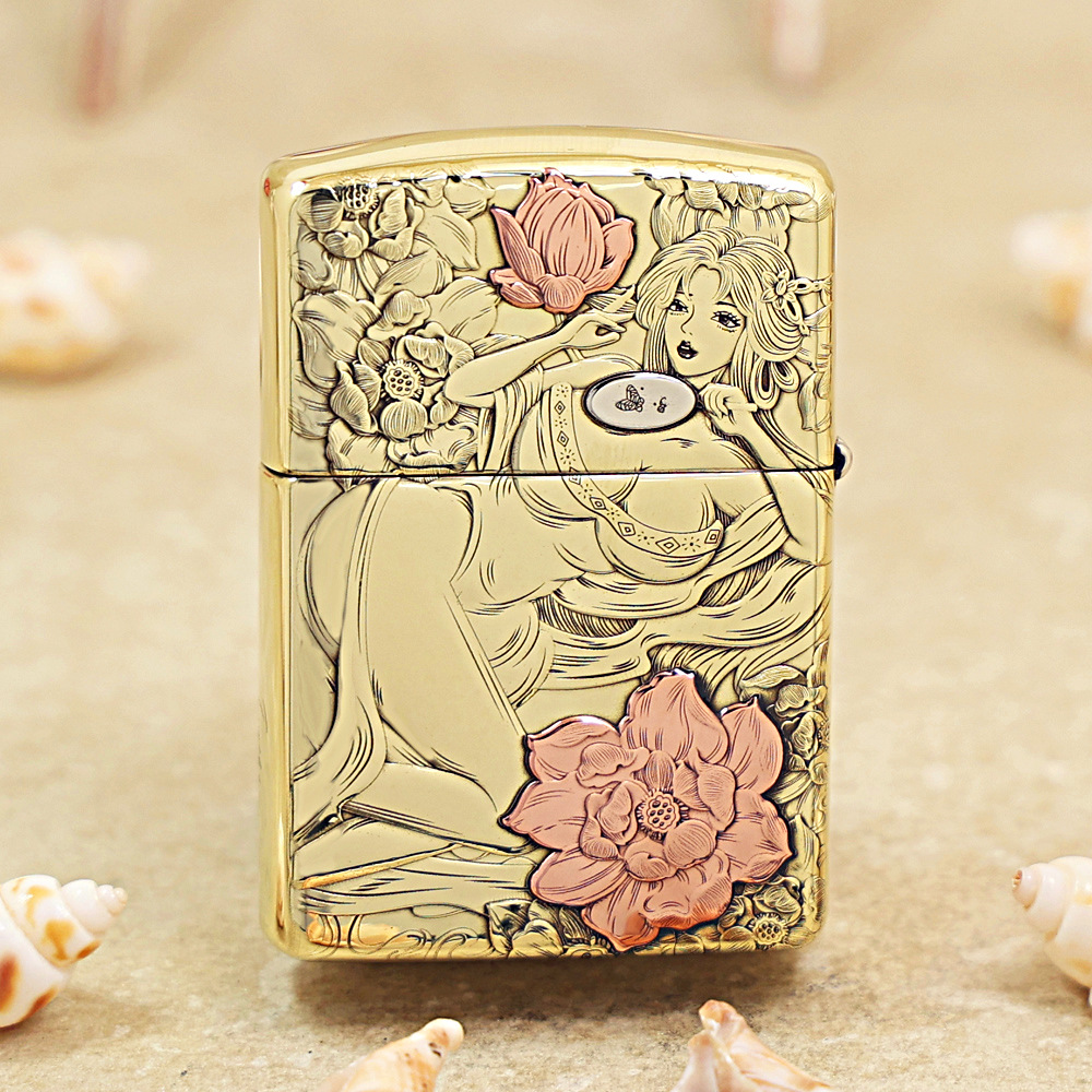 Etching Brass Armor Zippo Chinese Classical Beauty Lighter