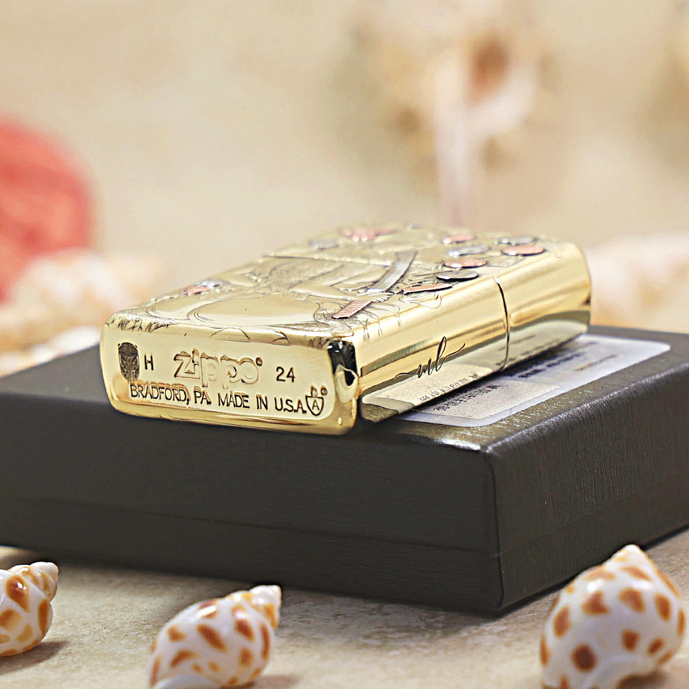 Etching Brass Armor Zippo Dragon Girl Lighter