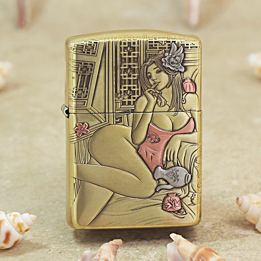Be the first to review “Etching Brass Armor Zippo Sexy Beauty Lighter”