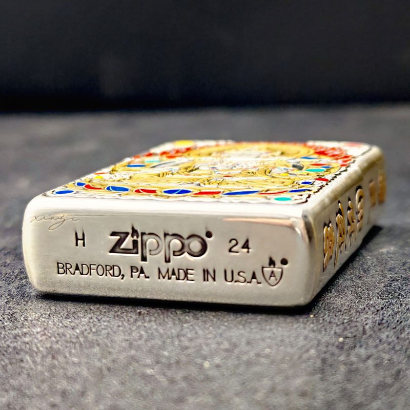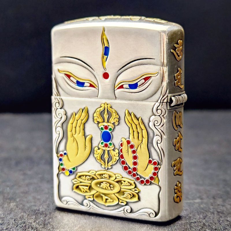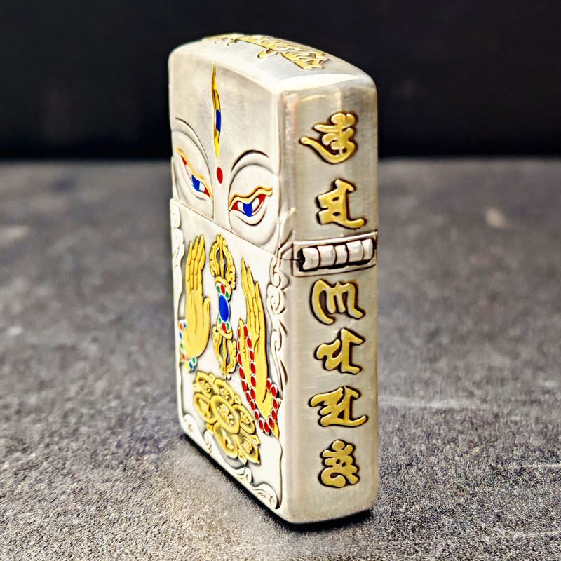 Etching Silver Armor Inlay Gold White Tara Zippo Lighter