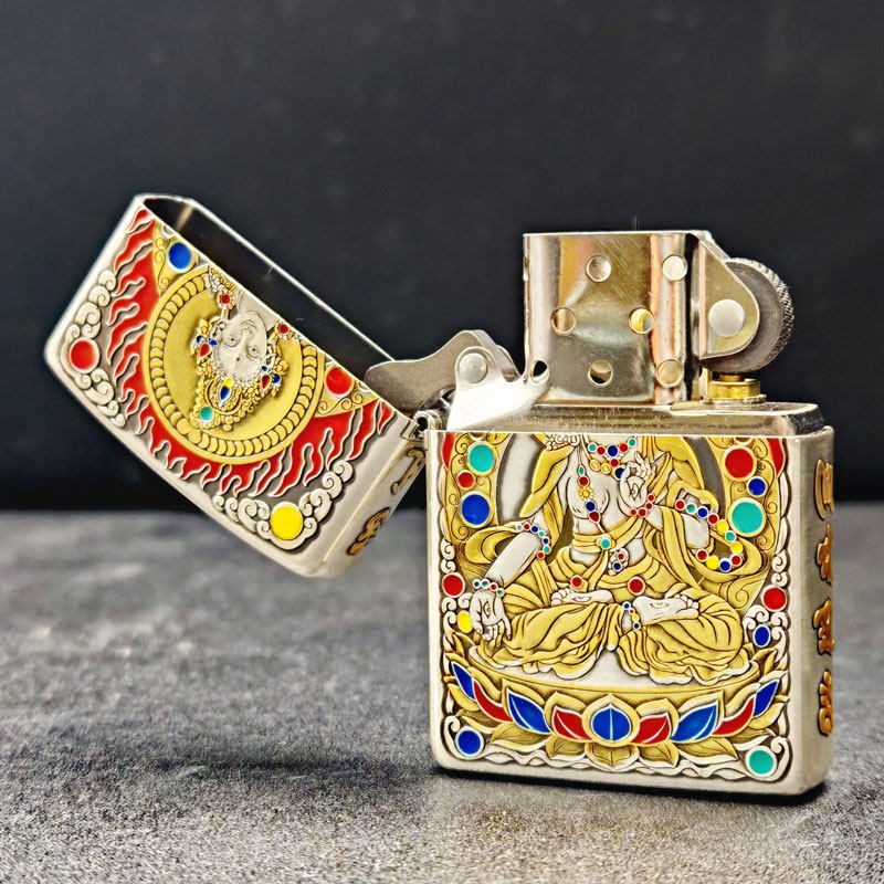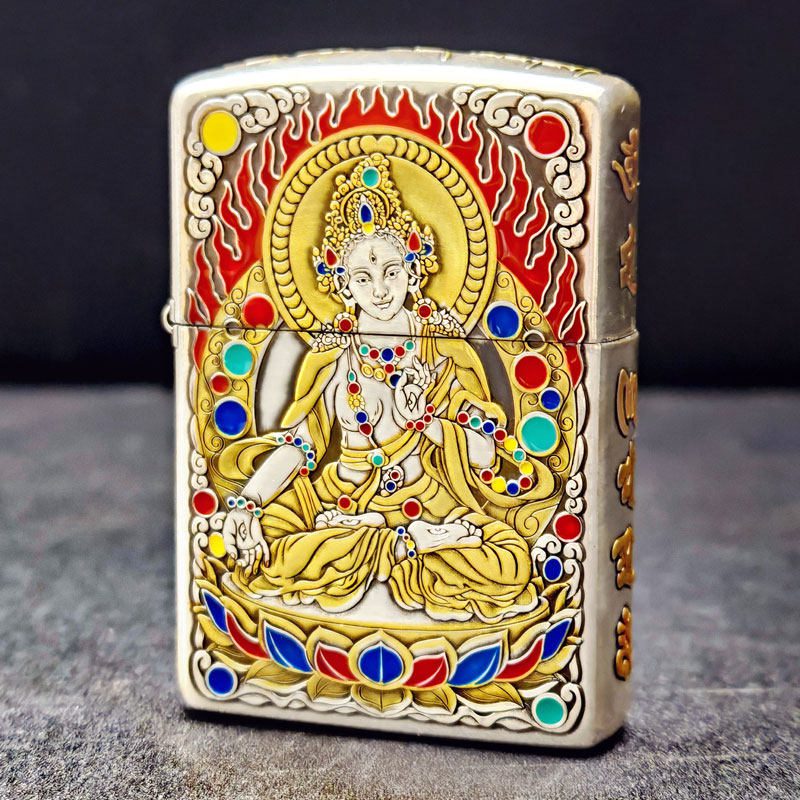 Be the first to review “Etching Silver Armor Inlay Gold White Tara Zippo Lighter”