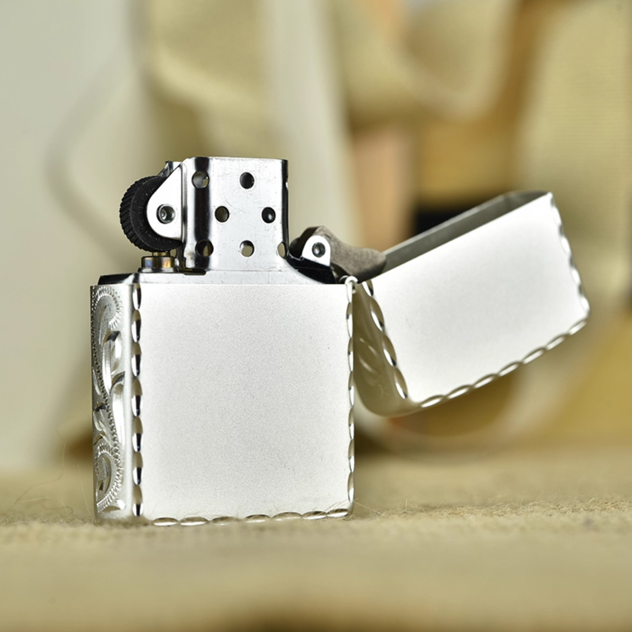 Etching Silver Zippo Handicraft Carving Arabesque Lighter