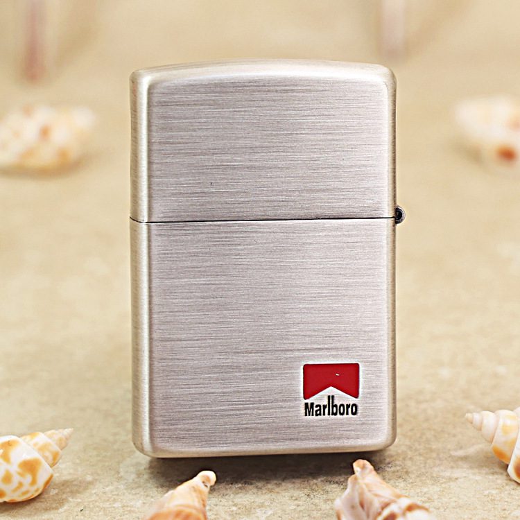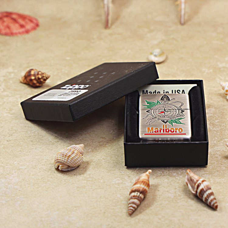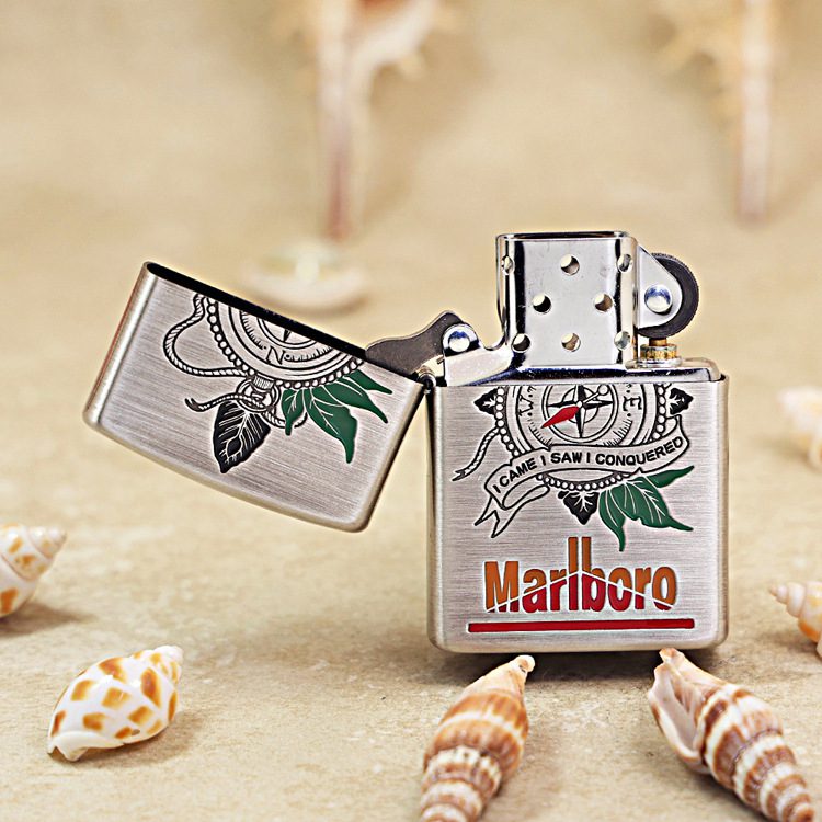 Etching Smoked Silver Marlboro Compass Zippo Lighter