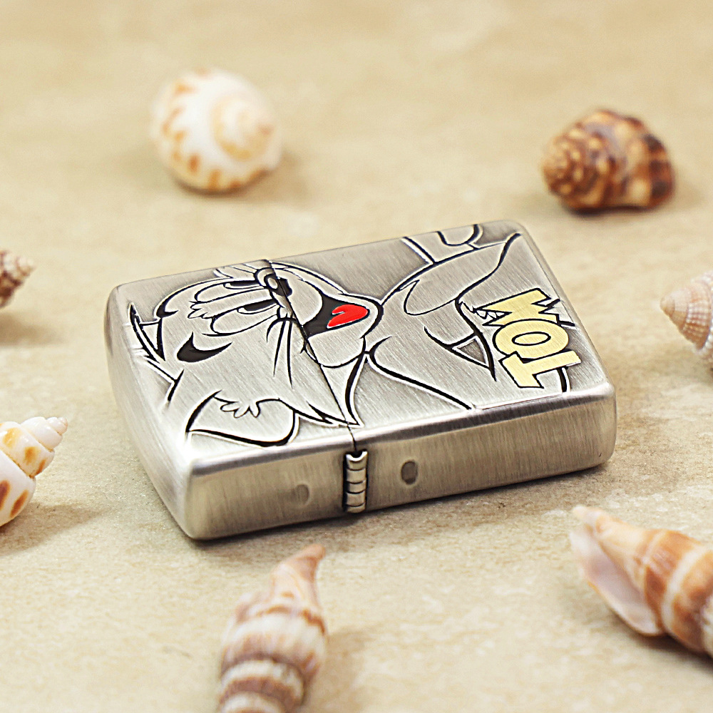 Etching Smoked Silver Tom and Jerry Zippo Lighter