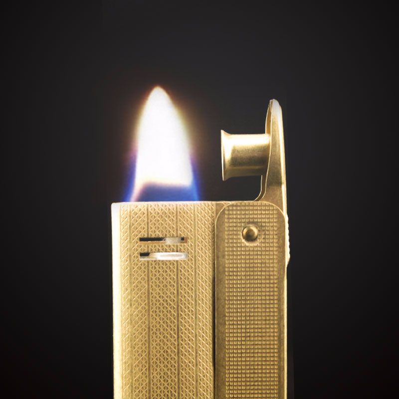 - Semi-automatic flint-wheel ignition — Thumb-flick lever for reliable spark; simple, controllable flame