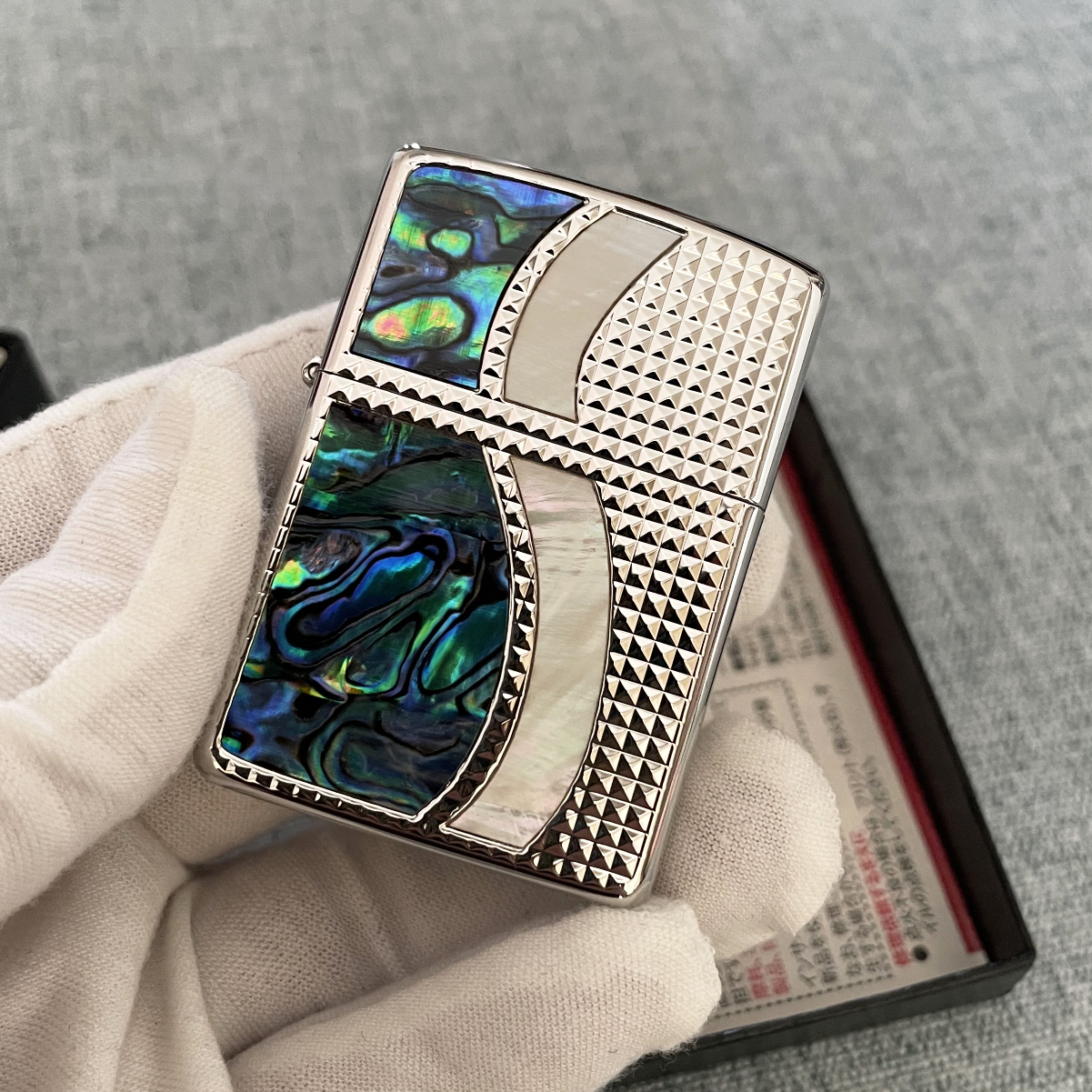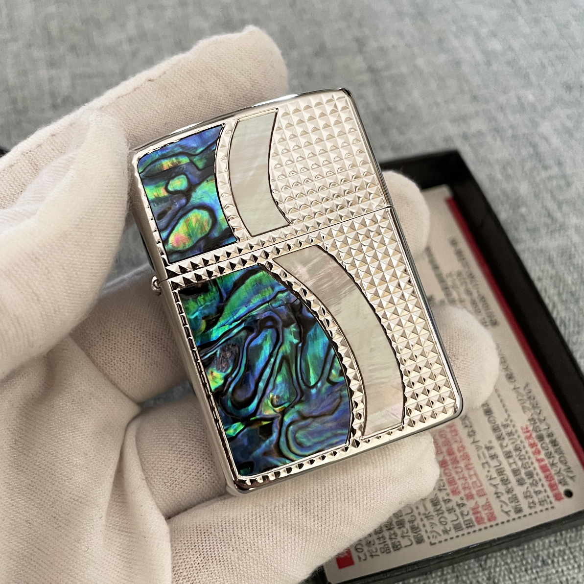 Japanese Zippo Plated Silver Inlaying Natural Shell Lighter