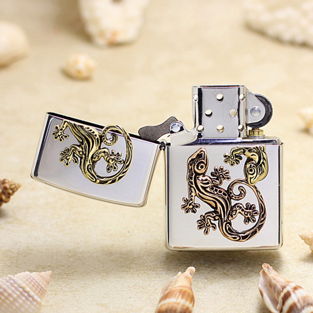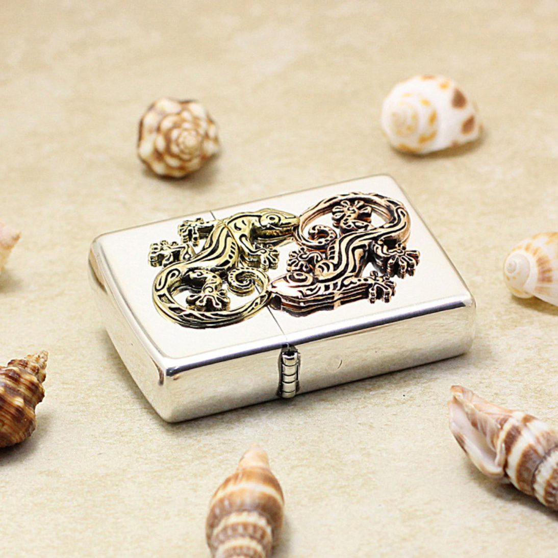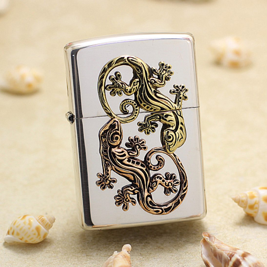 Japanese Zippo Plated Silver Lizard Design Lighter
