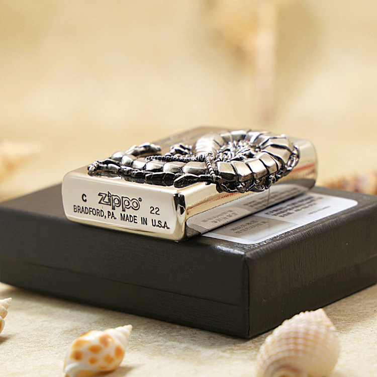 Japanese Zippo Plated Silver Scorpion Emblem Lighter