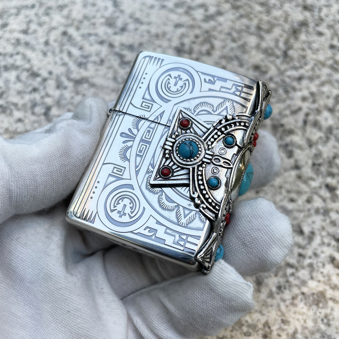 Be the first to review “Japanese Zippo Plating Silver Indian 3-Sides Turquoise Lighter”