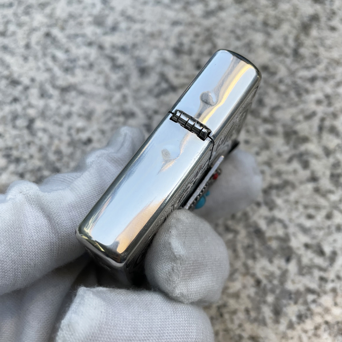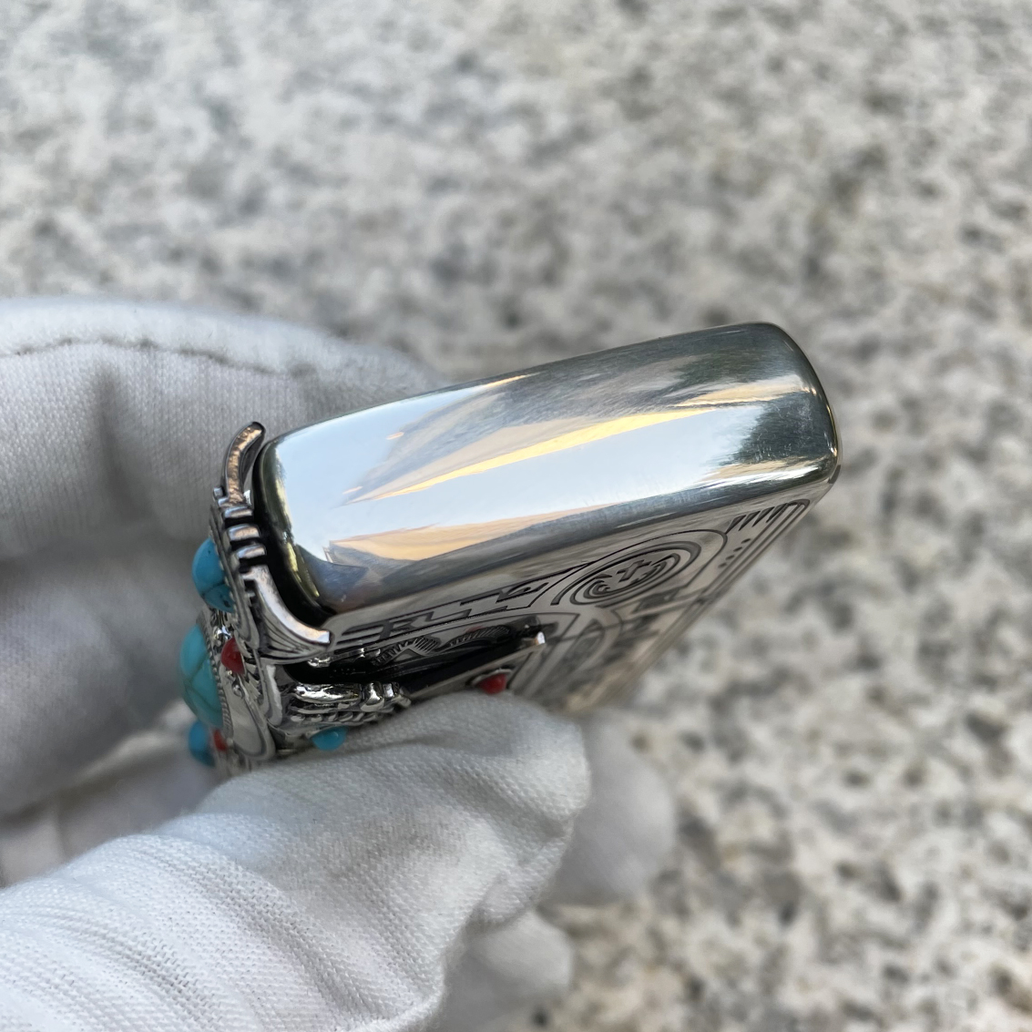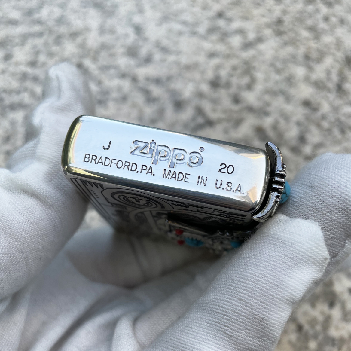 Japanese Zippo Plating Silver Indian 3-Sides Turquoise Lighter