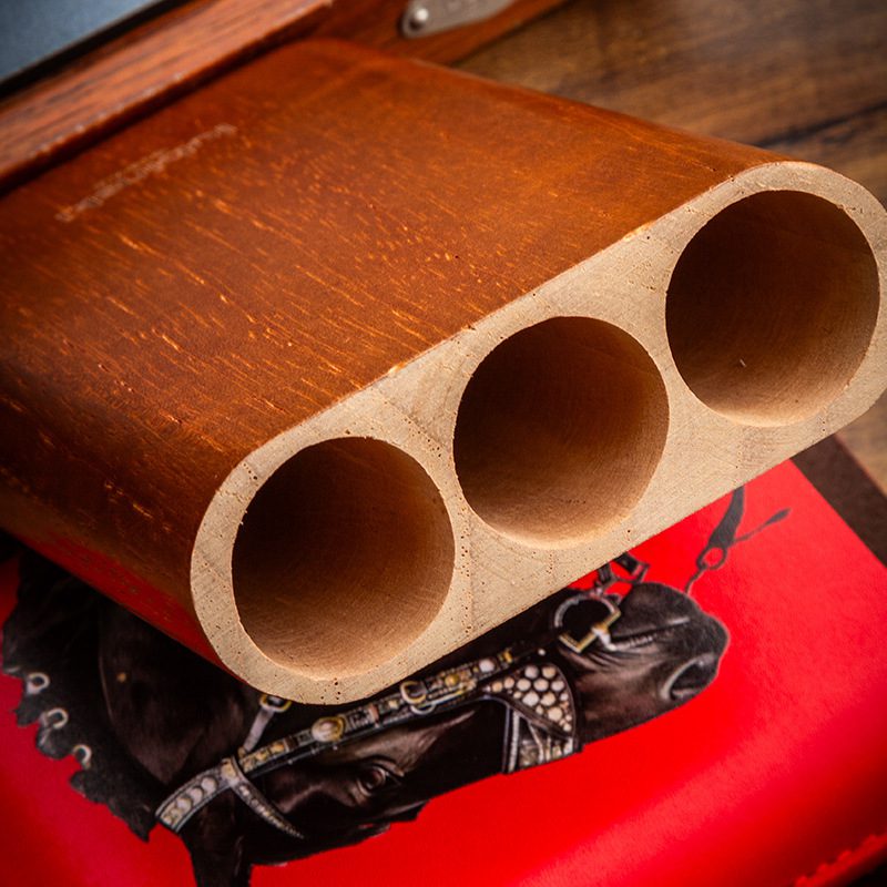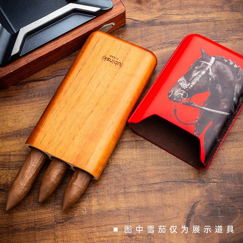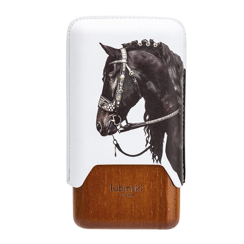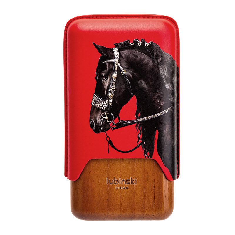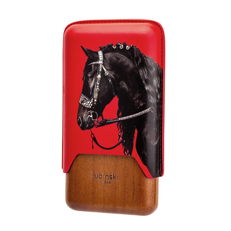 LUBINSKI Leather Cedar Wood Year of Horse Cigar Case for 3 Cigars