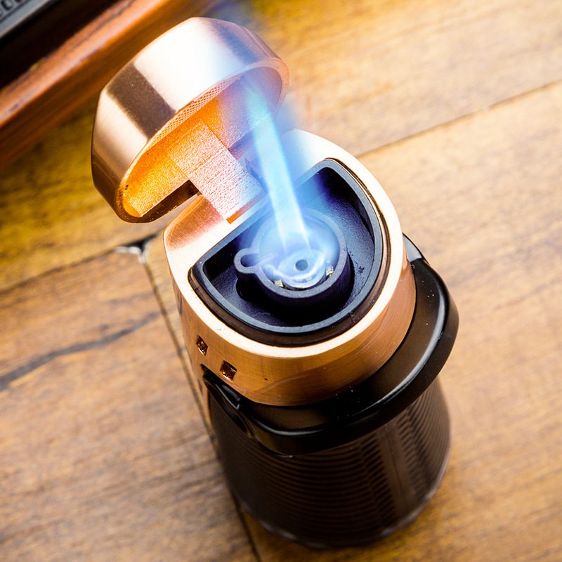 • Multiple Jets/Flames — Available in single, double, triple, or quad configurations. Double flames (parallel or pyramid-shaped) spread heat for 50-60 ring gauge cigars; triple (often triangular) offers powerful output for larger cigars (60+ ring gauge) without needing to rotate excessively.