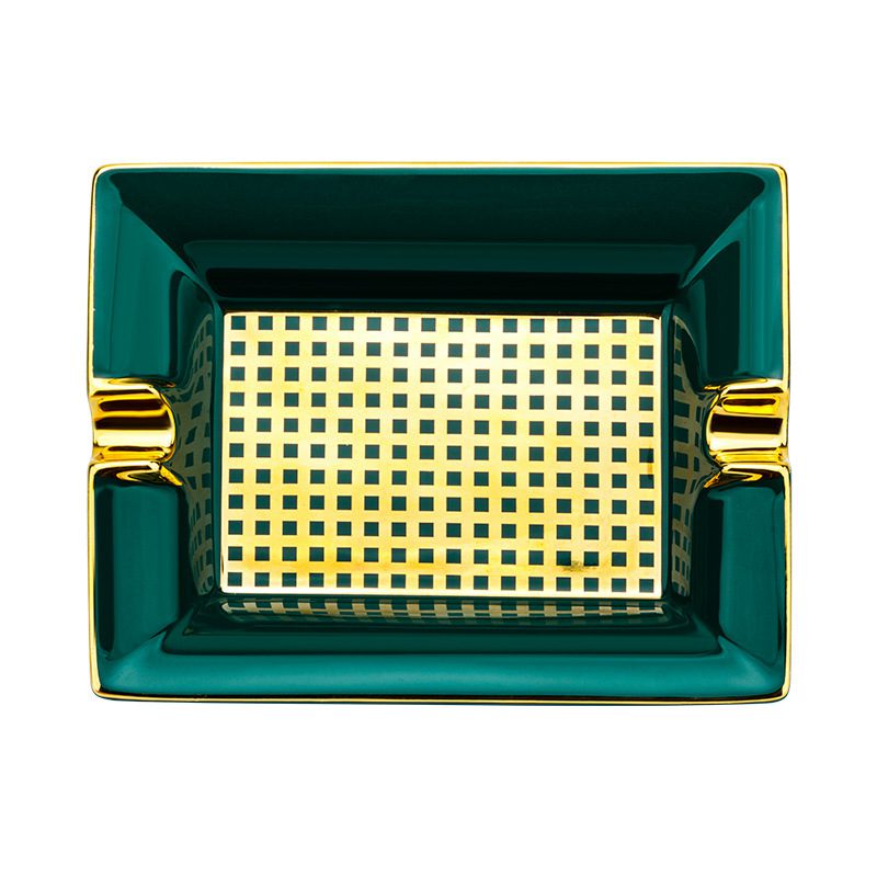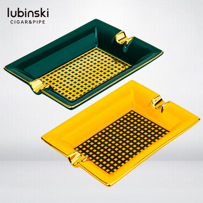 LUBINSKI Painted Two Slot Gilding Grid Cigar Ceramics Ashtray
