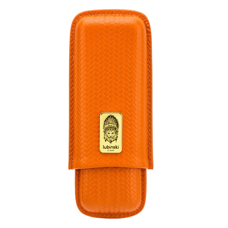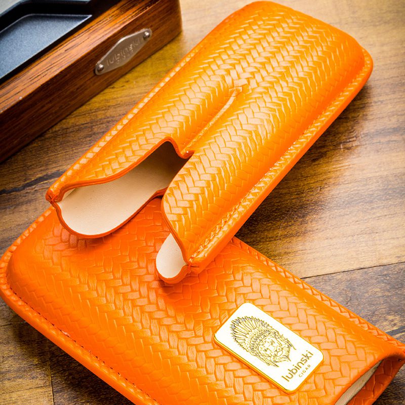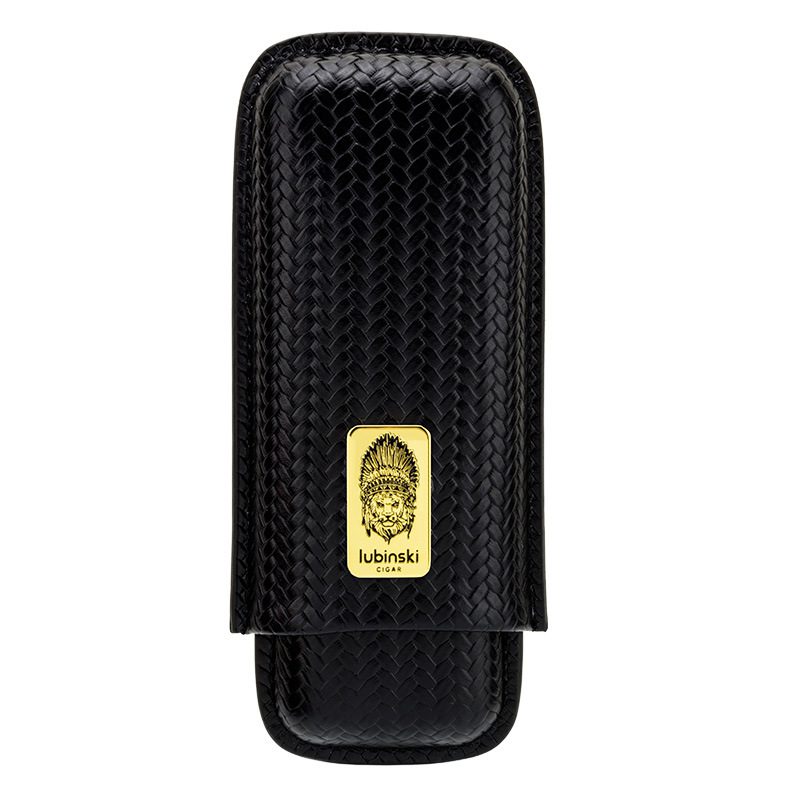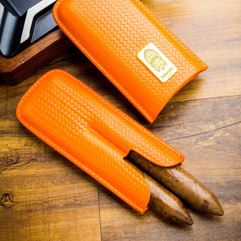 LUBINSKI Portable Leather Wheat Ear Cigar Case for 2 Cigars