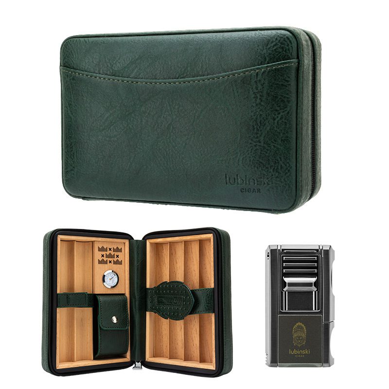 LUBINSKI Portable Travel Leather Cigar Box Humidor Case