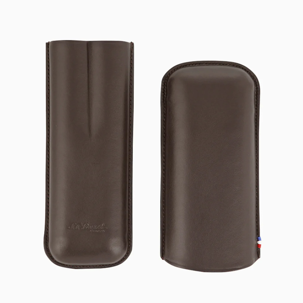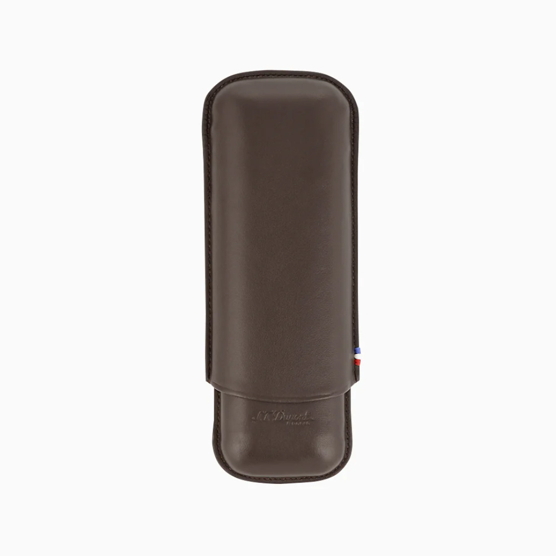 S.T. Dupont Brown Leather Adjustable Cigar Case For 2 Cigars 183141