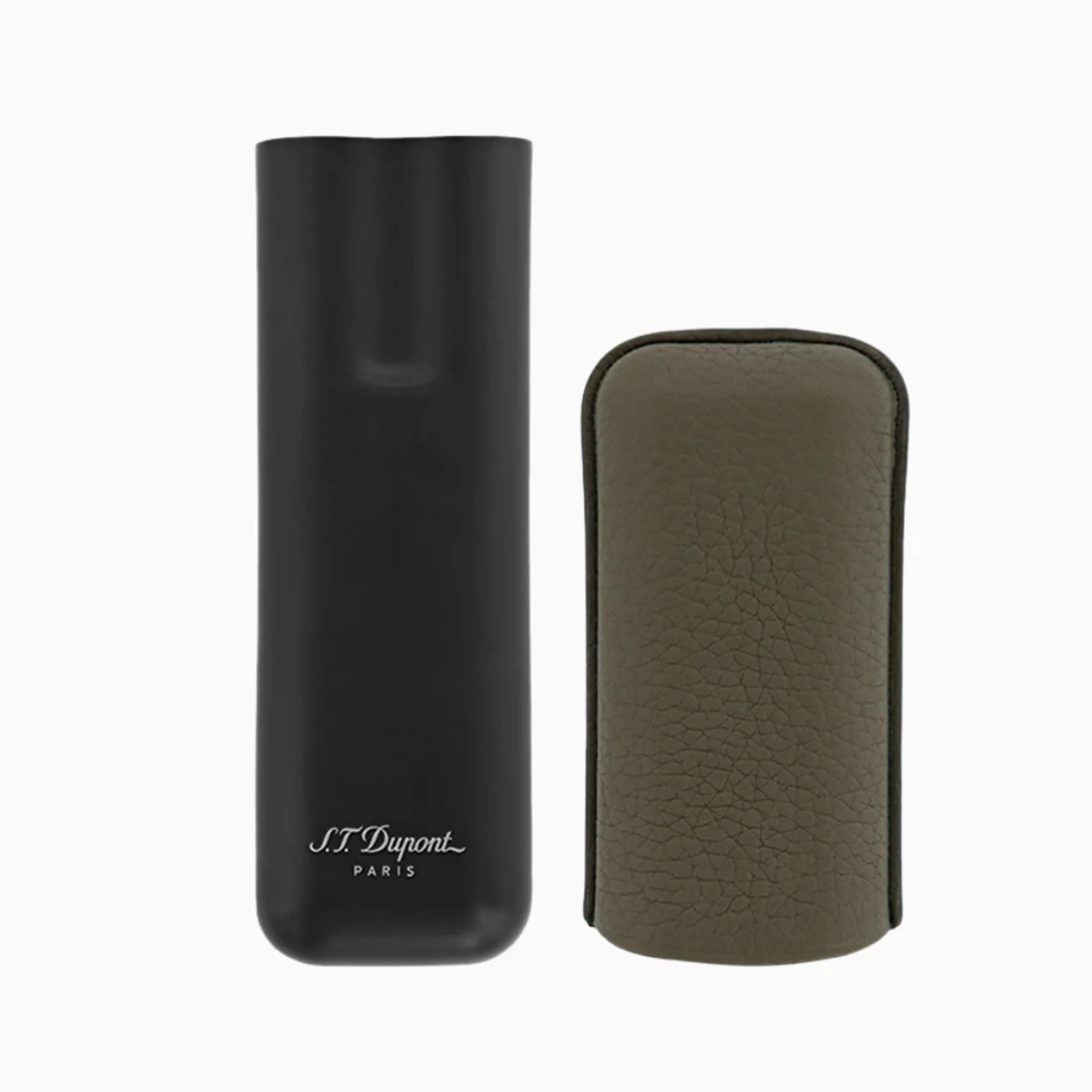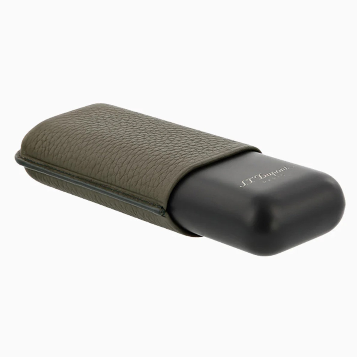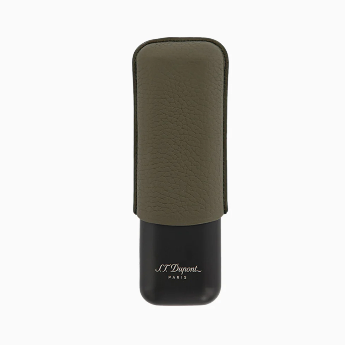 S.T. Dupont Khaki Leather & Black Metal Cigar Case For 2 Cigars 183249